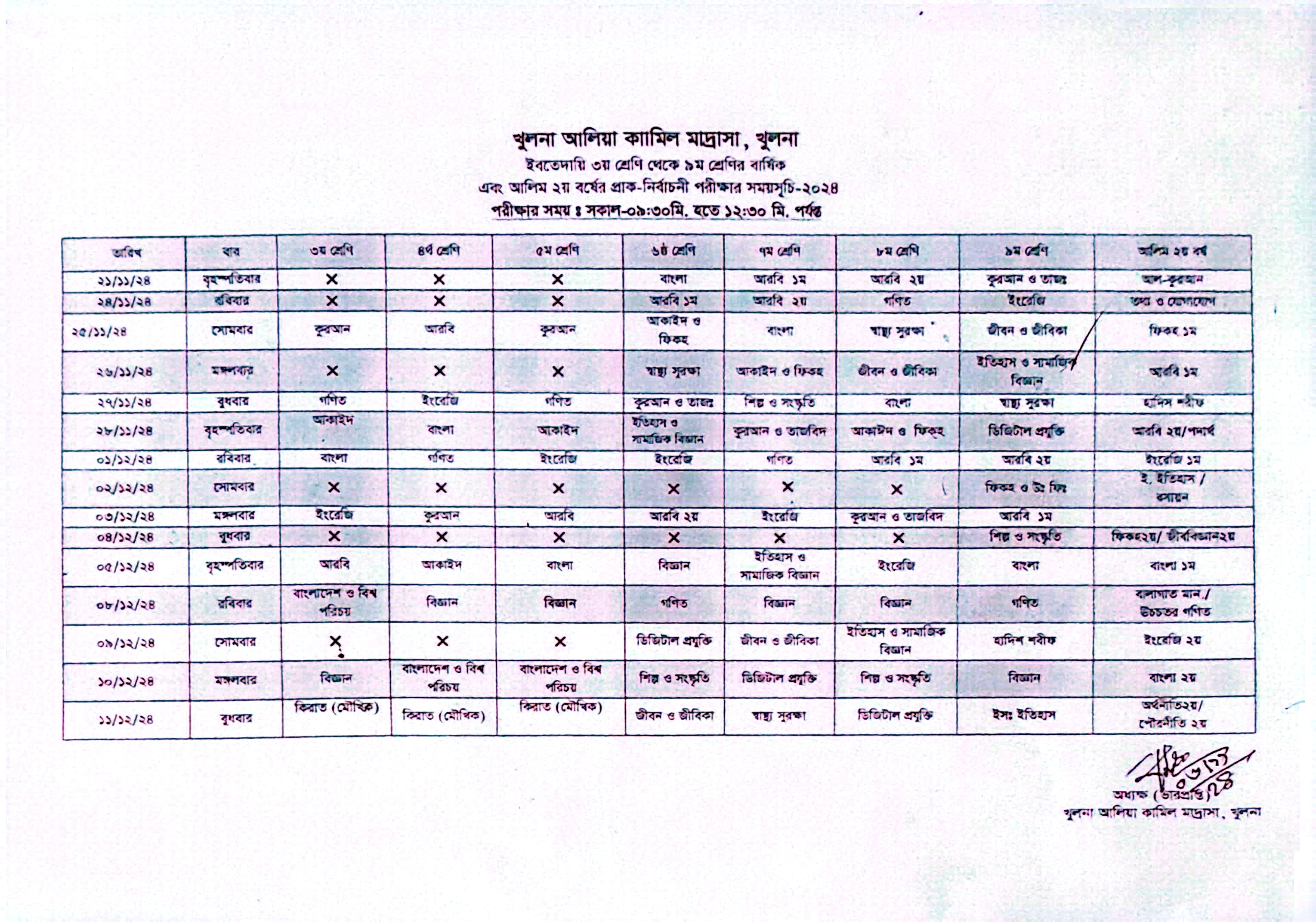 বার্ষিক পরীক্ষার সময়সূচী-২০২৪